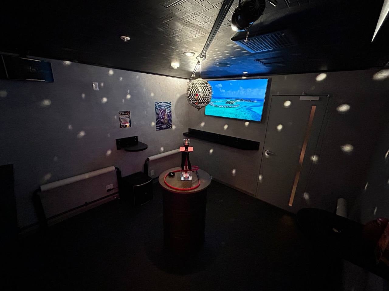 音響設備にはJBL製のサブウーファーとスピーカーを採用し、高音質から重低音まで最高の音質で店内を包みます。店内は、天井の青いネオンライトを基調とし、カウンターなどは暖色を用いて落ち着いた大人の雰囲気を演出しています。40名収容のメインフロアのほかに、「VIPルーム」もご用意しており、壁紙、照明、スピーカーなども上質なものをとりいれたラグジュアリーな空間でカラオケも完備しています。最大収容人数は12名ほどで、プライベートな会合や仲間とのイベントなど、様々な用途でご利用いただくことができます。
