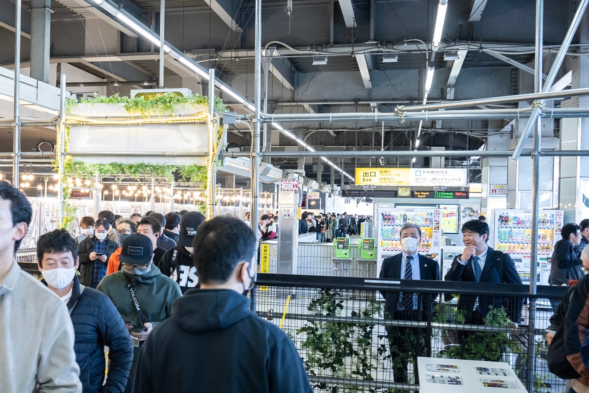 〈写真:「人類みな麺類 JR名古屋駅 幻の1番線」グランドオープン時の行列の様子〉