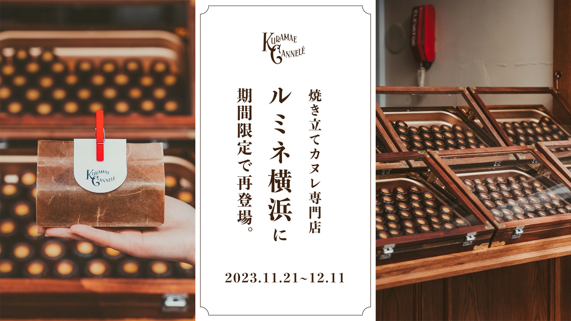 東京・蔵前にあるSNSで話題の焼き立てカヌレ専門店「KURAMAE CANNELÉ(クラマエカヌレ)」(運営:CLASSIC INC.、代表取締役 : 萱場俊克、本社 : 東京都渋谷区)は、2023年11月21日(火)〜12月11日(月)、ルミネ横浜 地下1階 イベントスペースにて期間限定で出店いたします。