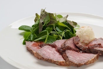 阿智村産野菜のサラダに信州産牛のローストビーフを贅沢に使った一品