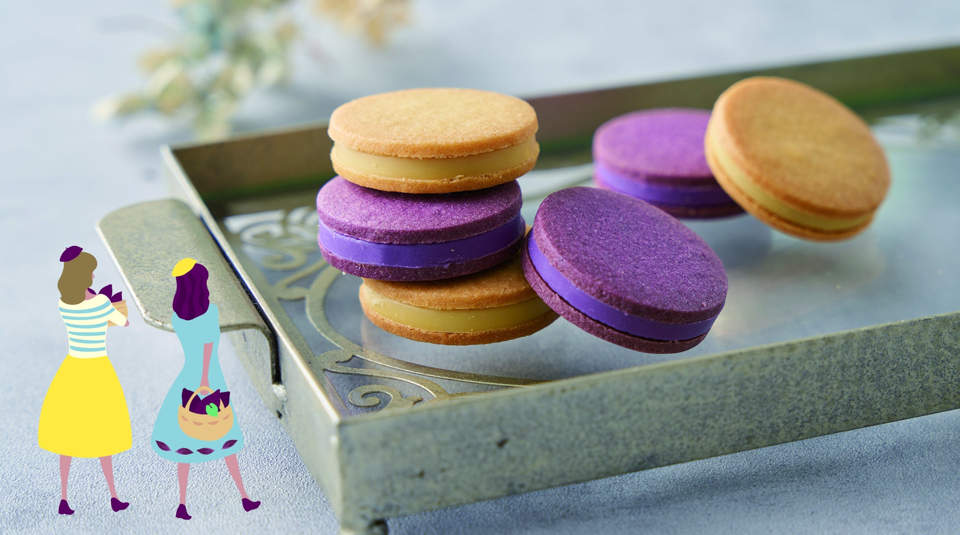 目を惹くパープルカラーが映える!「おいもサブレサンド」