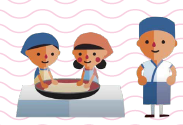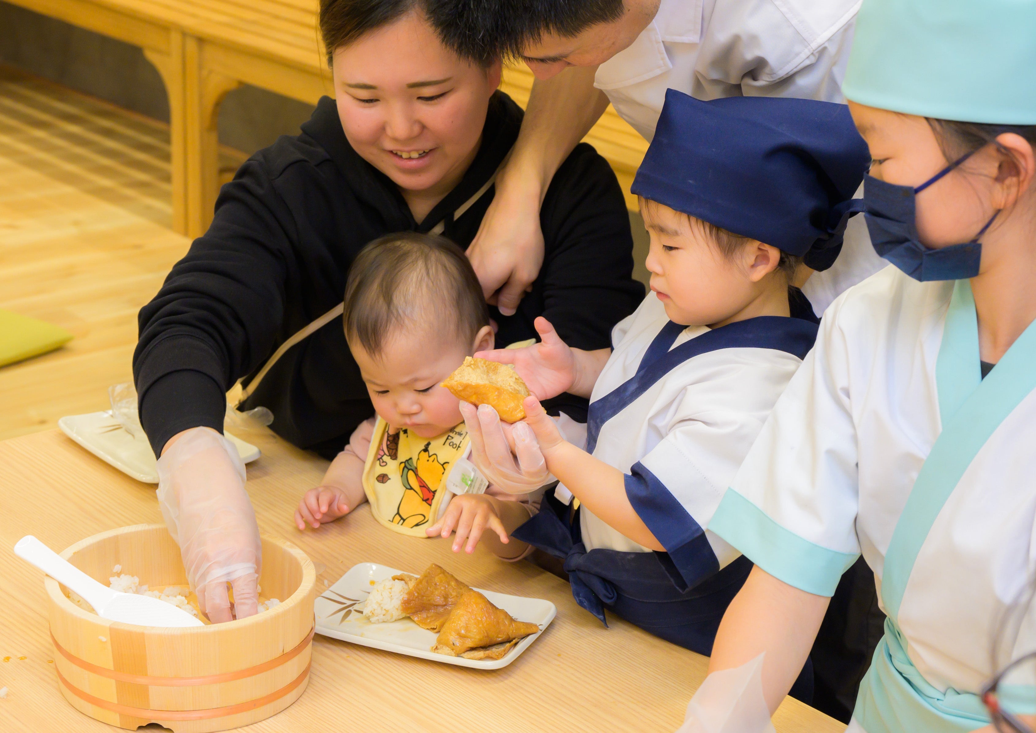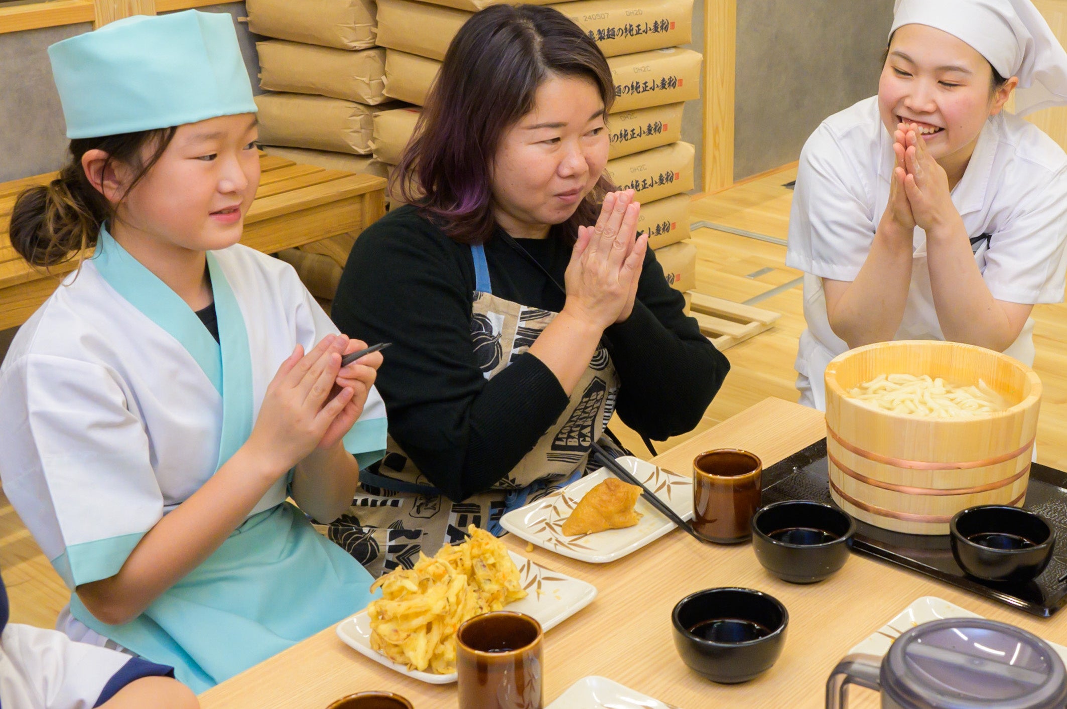 お子さまは、「麺職人」の制服で「うどん」「天ぷら」「いなり」づくりを体験いただけます。