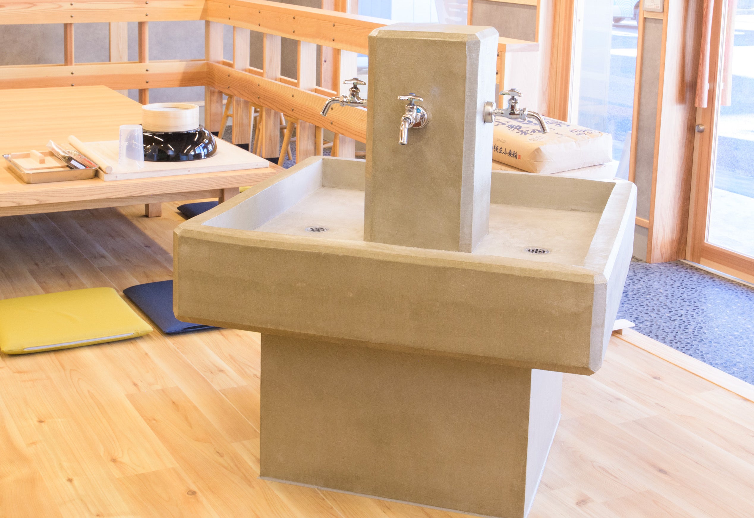 みんなでうどんを作ったり、学んだり、食べられる大きなテーブル。