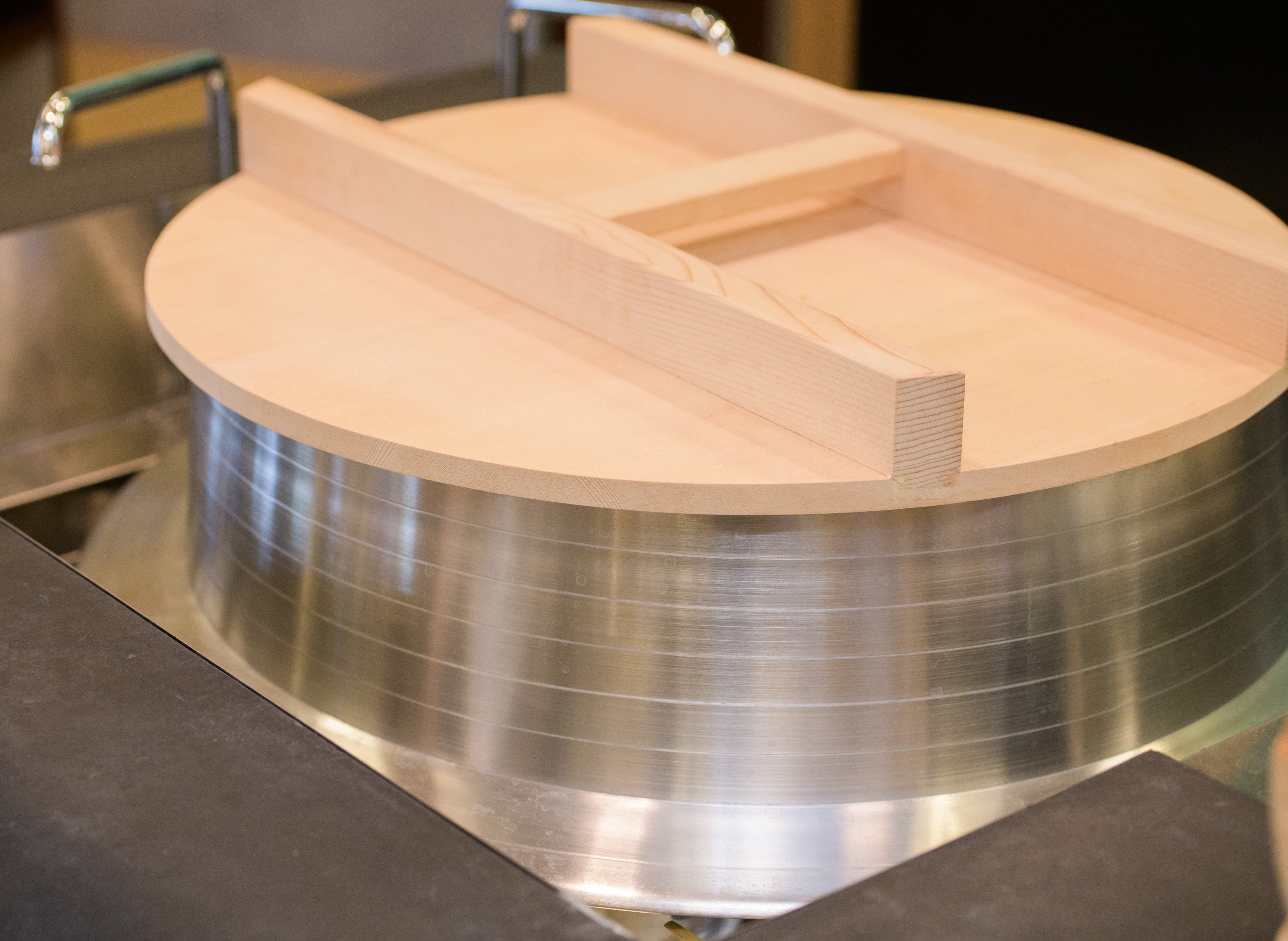 手づくりうどんを茹でる大きな釜。こちらもお子さまが見られる高さに!
