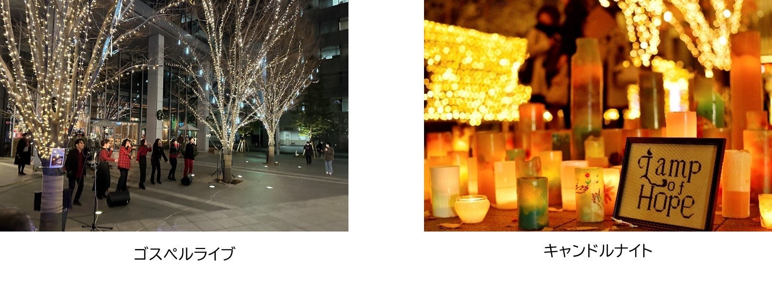 同時に東日本大震災を契機に開始したキャンドルナイトを今年も開催し、イルミネーションとともに辺りを暖かく照らします。