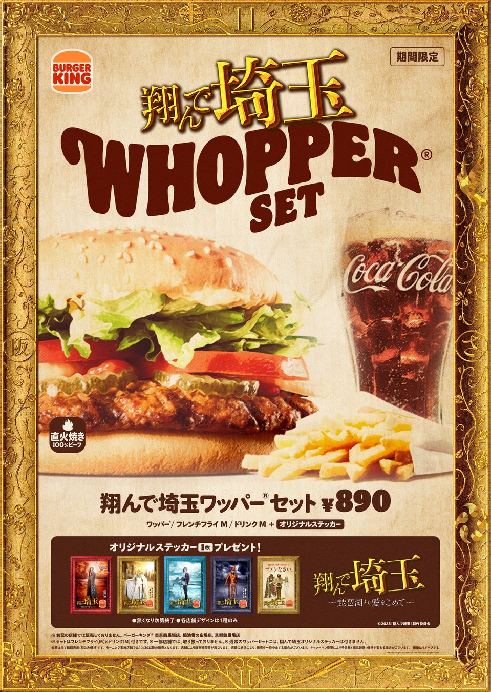 『翔んで埼玉』ファンの皆様も、バーガーキング® ファンの皆様も、ぜひこの機会に『翔んで埼玉 ~琵琶湖より愛をこめて~』とコラボレーションした『翔んで埼玉 ワッパー® セット』をお楽しみください。