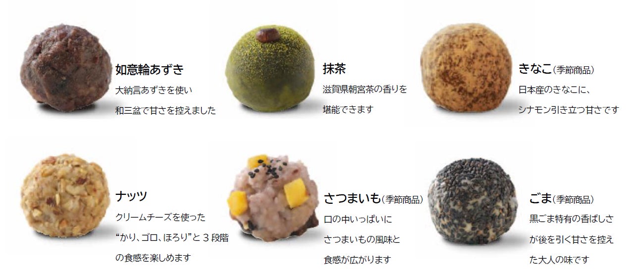 おはぎは、滋賀県産のお米と大納言あずきを使用し、和三盆で甘さを抑えた、あずきの美味しさが引き立つひと口サイズの手作りおはぎです。紅茶は、ヨーロッパで多くの人たちに愛され、190年以上の歴史のあるドイツのロンネフェルトティーを提供します。また、瀬田店限定商品として、 風味豊かなクロワッサンの上に、CaFé KanOnのこだわりの餡をトッピングした「アンクロワッサン」も、ご用意しておりますので、ぜひご賞味ください。●おはぎ 各種1個250円(税込)