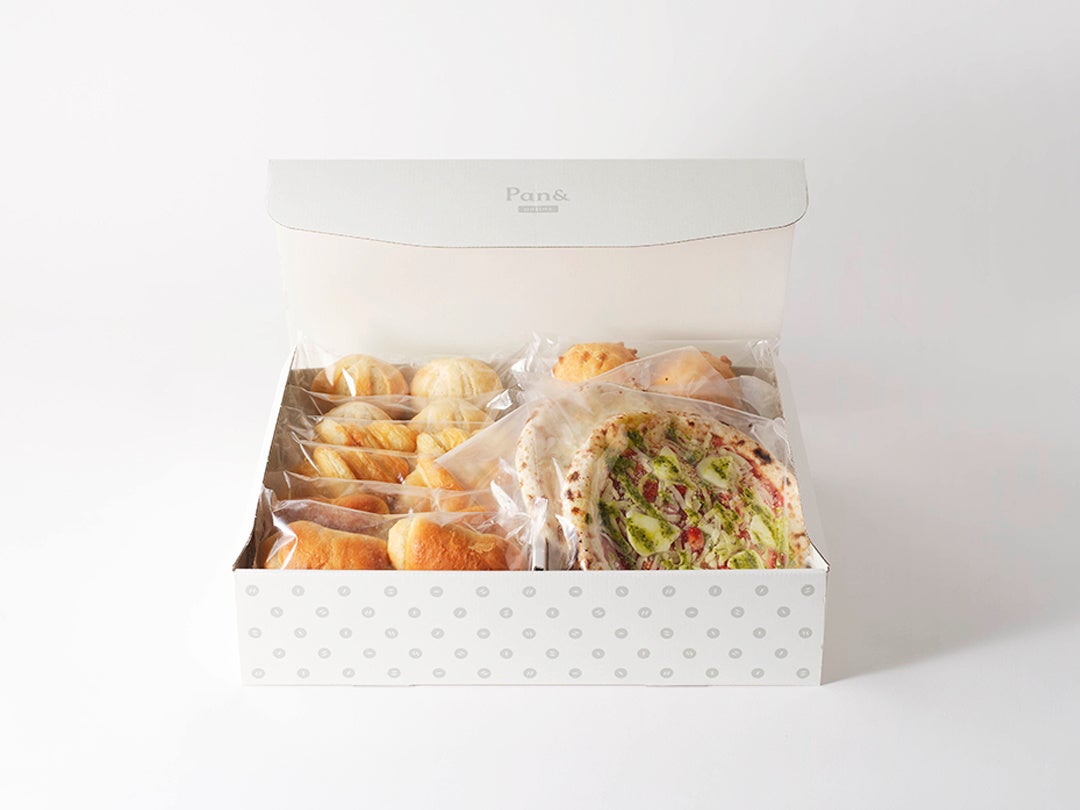 特長:Pan&を代表する4種のパンに加え、本格ナポリ風ピザ2種を詰め合わせた贅沢なラインナップ。トースターで温めるだけで、焼きたてのパンとピザが出来上がります。ぜひ、楽しい・おいしいをシェアしてお楽しみください。
