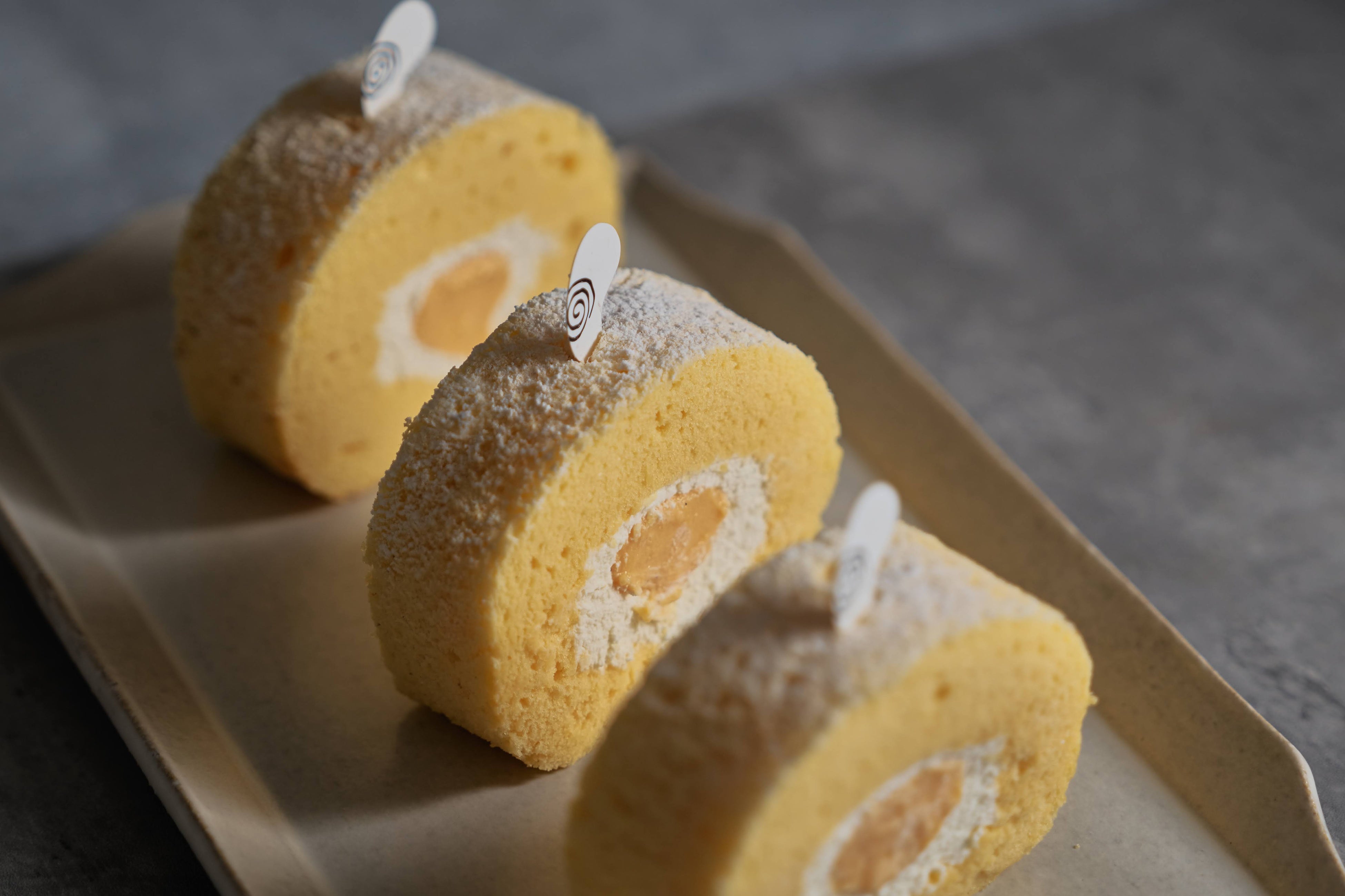 そしてセンターには卵を贅沢に使った濃厚なクレームパティシエールを合わせくるりと巻きました。