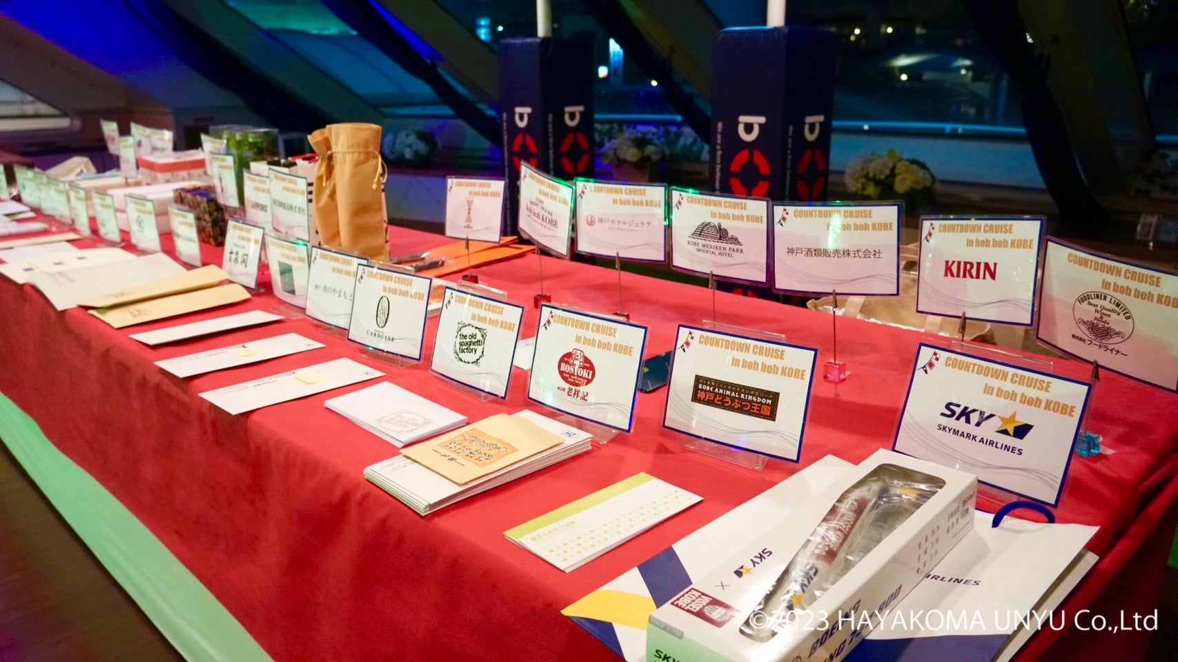 クルーズ中、神戸の有名ホテルの宿泊券や有名レストランの食事券、神戸ならではのスイーツやお酒、観光施設のチケット、非売品のオリジナルグッズ等の商品券等、100を超える豪華賞品が当たる、神戸シーバスのカウントダウンクルーズ恒例の大抽選会を開催!