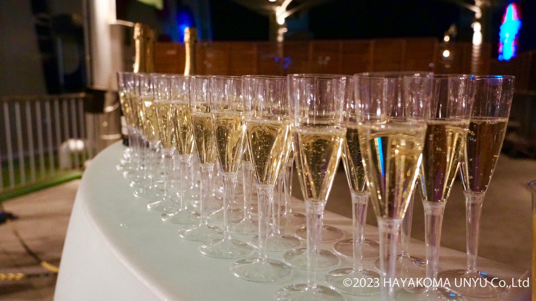 さらに、ご乗船の皆さまには、京都料亭 杦 -SEN- 監修のスペシャルフードや、ウェルカムドリンクとしてスパークリングワインをお召し上がりいただき、新年の幕開けにふさわしい特別な気分を味わうことができます。お酒がNGのお客様にはノンアルコールドリンクをご用意しております。
