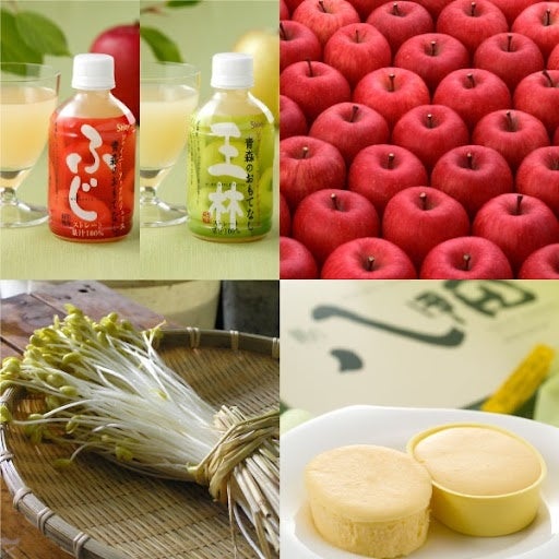 ↑ <シャイニー>「青森のおもてなし」(ふじ、王林、1本280ml) 各税込168円