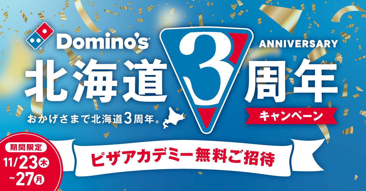 - 2023年11月27日は、ドミノ・ピザ、北海道再出店3周年の記念日!道内全店舗で「ピザアカデミー」に各日先着2名様を無料ご招待!