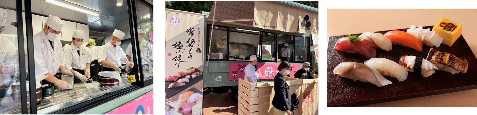 新鮮な「常磐もの」のネタを生徒たちがライブ感たっぷりのキッチンカーで握り、ご提供。日頃の鍛錬の成果を披露!