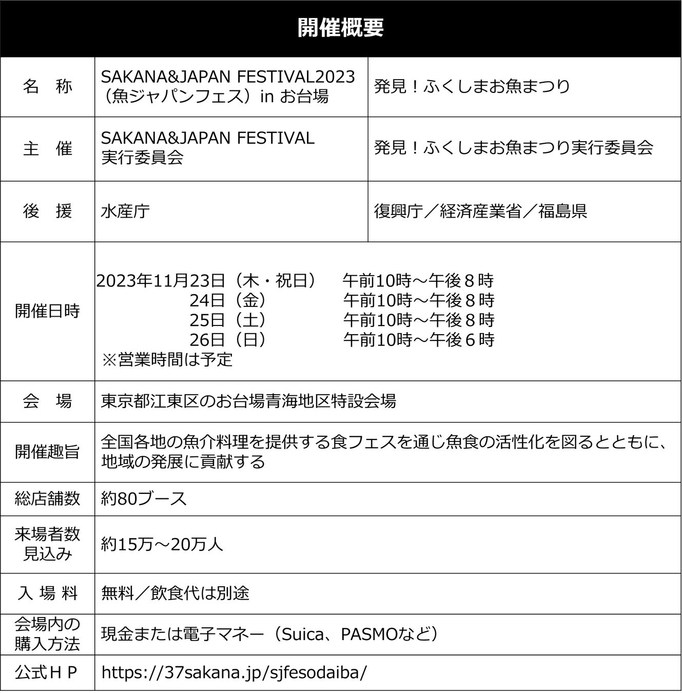 - SAKANA&JAPAN FESTIVAL(魚ジャパンフェス) 全国各地の魚介&ご当地グルメが大集合!