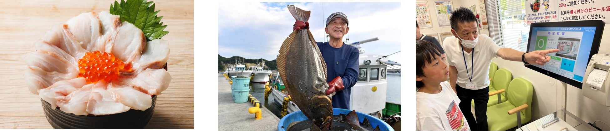 福島県富岡町のブースでは初日に、富岡漁港所属の漁師さんがイベント直前に獲った常磐ものヒラメを地元から直送。会場のキッチンカーで板前がさばいて海鮮丼にして、ガラポン抽選で100食を無料で提供します。また、ヒラメの放射性物質検査の実演も行います。安心・安全なとれたて、さばきたてのピチピチの常磐ものヒラメをお楽しみください。