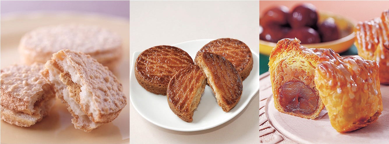(左から)ダックワーズ(2 個入) 税込 486 円、ギャレット・ブルトンヌ(5 枚入) 税込 1,404 円、マロンパイ(1 個) 税込 507 円