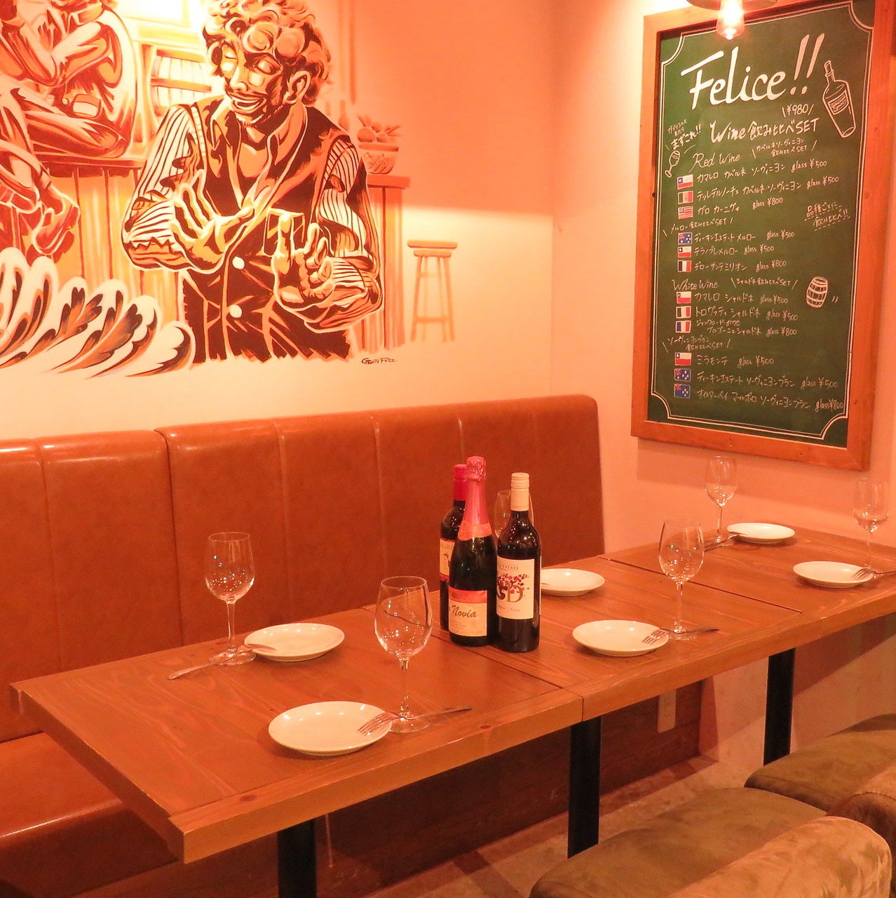 気の合う仲間とワイワイ楽しみながら、仙台で気軽にワインが楽しめるにぎわいワイン酒場です。女子会、合コン、デートなど、カジュアルな雰囲気でどんなシーンにもぴったりです。