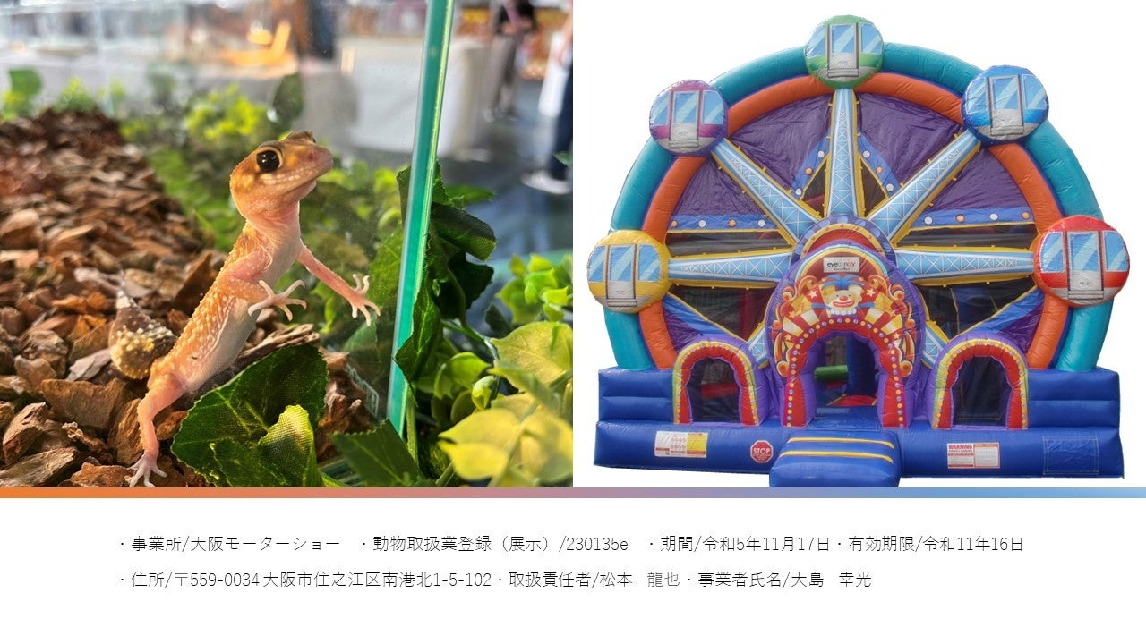 ❖小さな恐竜たちの世界『爬虫類の展示・ふれあいコーナー』、『ふわふわ』、『プラモデル販売コーナー』