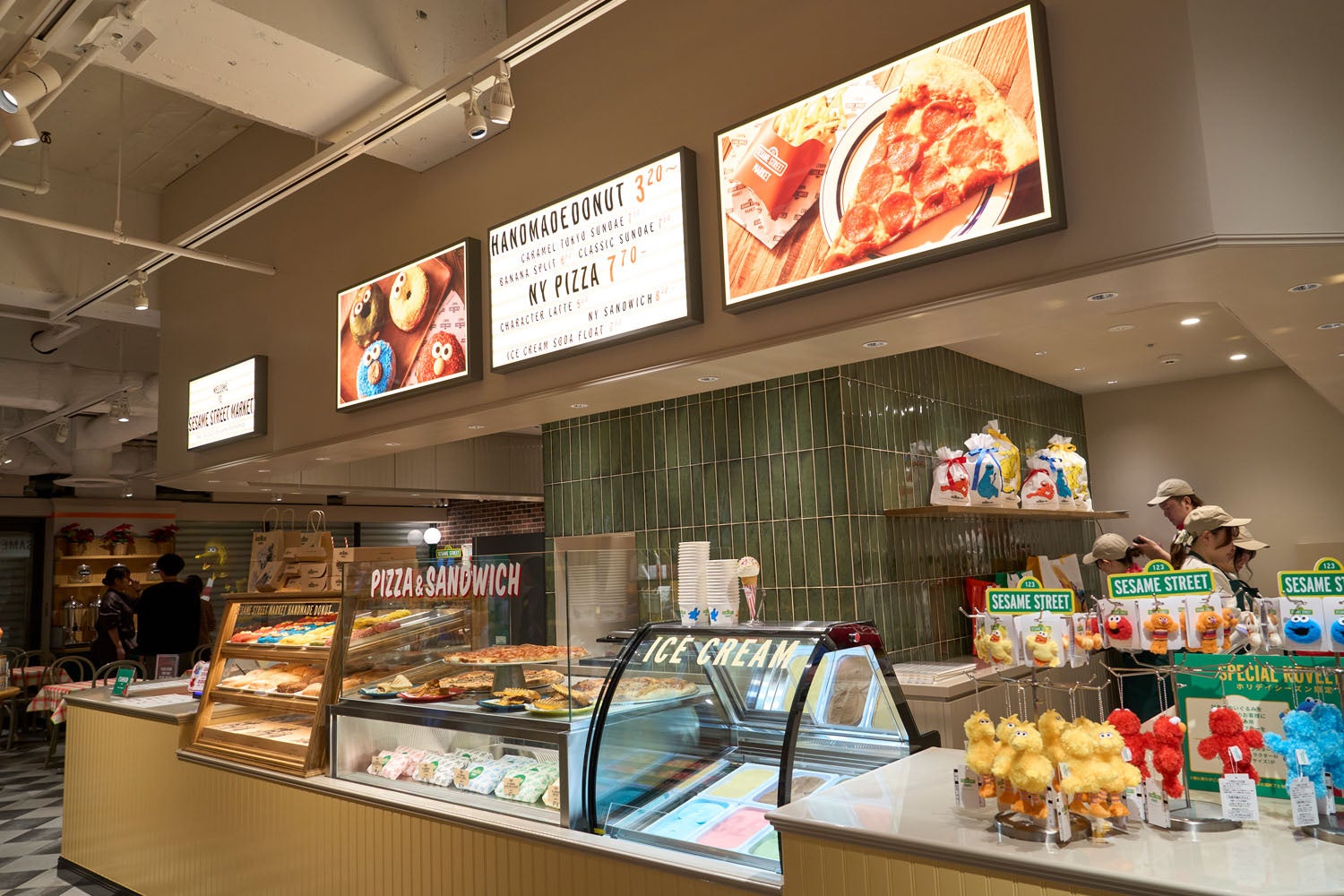 特に店内奥、セサミストリートに登場する食料品や日用品を販売している店舗「HOOPER’S STORE(フーパーズストア)」と外のテーブルセットは再現性も高く、フォトスポットとしてもおすすめ。