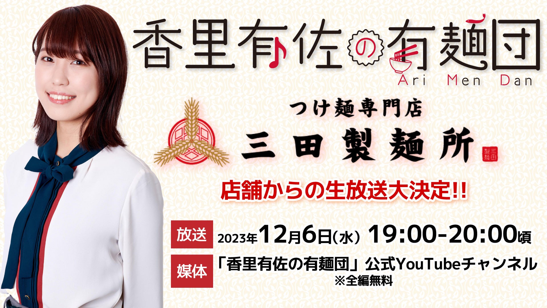 【三田製麺所】声優・香里有佐さんによるラーメン探訪番組『香里有佐の有麺団』 12月6日(水)に番組史上初となる店舗からの生放送が決定!