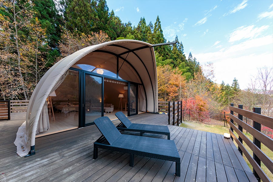 春夏秋冬それぞれの季節の美しさをmökki STARDUST GLAMPING achi villageのグランピングステイでご堪能ください。