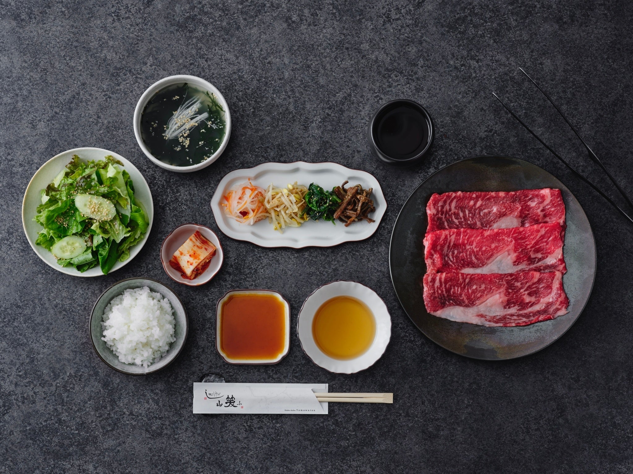 心地の良い空間を演出し“くつろぎ”と共に、厳選した上質なお肉をご提供するやきにく屋です。国内に3店舗を構えるしゃぶしゃぶ 山笑ふの“一人一鍋”を継承して、“一人一台の無煙ロースター”のお席もご用意しています。春をあらわす季語である、店名の「山笑ふ」は、ふつふつとたぎりながら芽吹く様子を表現しています。