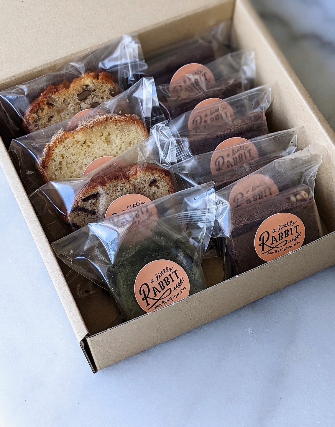 販売商品:詰め合わせ商品(ウェストヴィレッジBOX、チェルシーBOX、ソーホーBOX)、スライス売り商品(ファッジブラウニー、バナナブレッド、レモンポッピーシード、抹茶リッチ、アップルウォールナッツ)