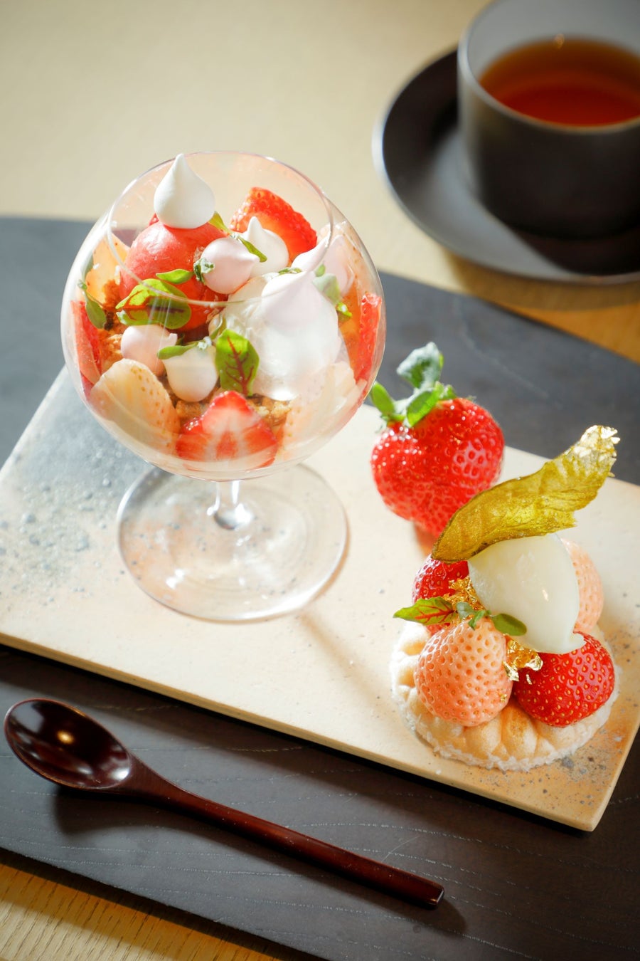 2種の苺と京都のエッセンスが奏でるアートのような春の苺パフェ「The Art of Strawberry」