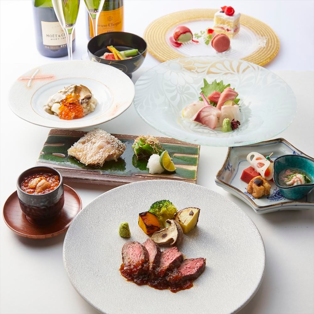 雲丹、伊勢海老、あわび、黒毛和牛など高級食材を使用した豪華懐石コースで大切な人との大切な時間を優雅に演出