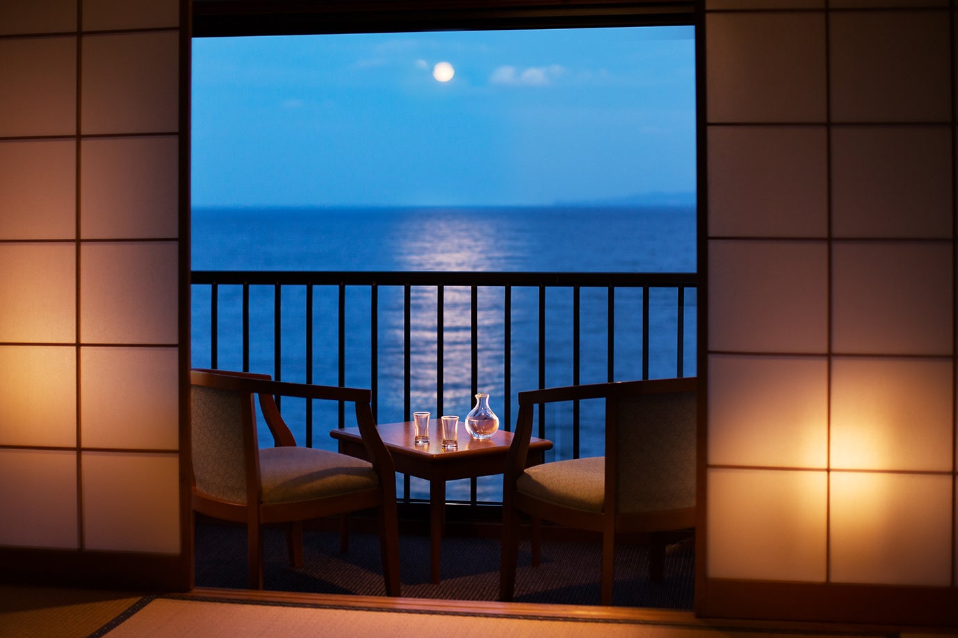 【客室】相模湾に昇る朝日と、満月の前後には「ムーンロード」を望む和室