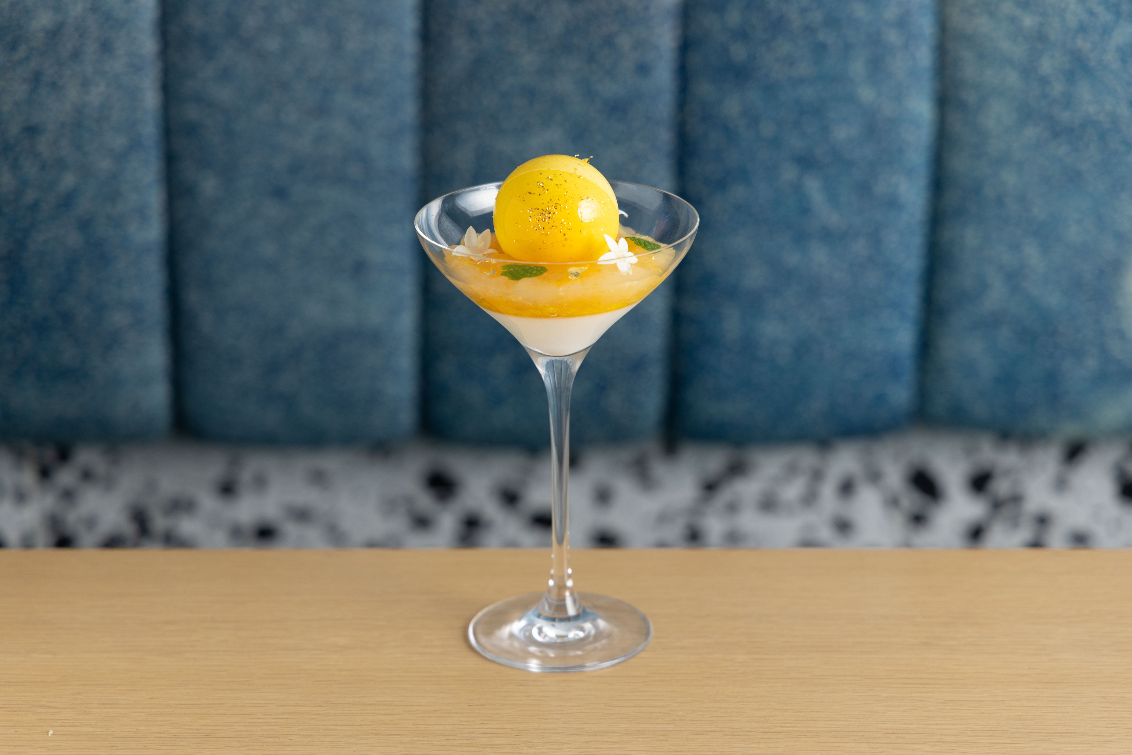 ホワイトチョコレートのムース、オランジュリーのジュレとソルベ