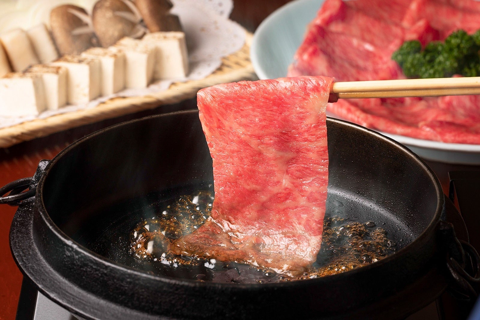 昭和28年の創業以来、⾷の醍醐味を追求し、最⾼の⽜⾁を提供し続ける、すきやきの名店「岡半」。