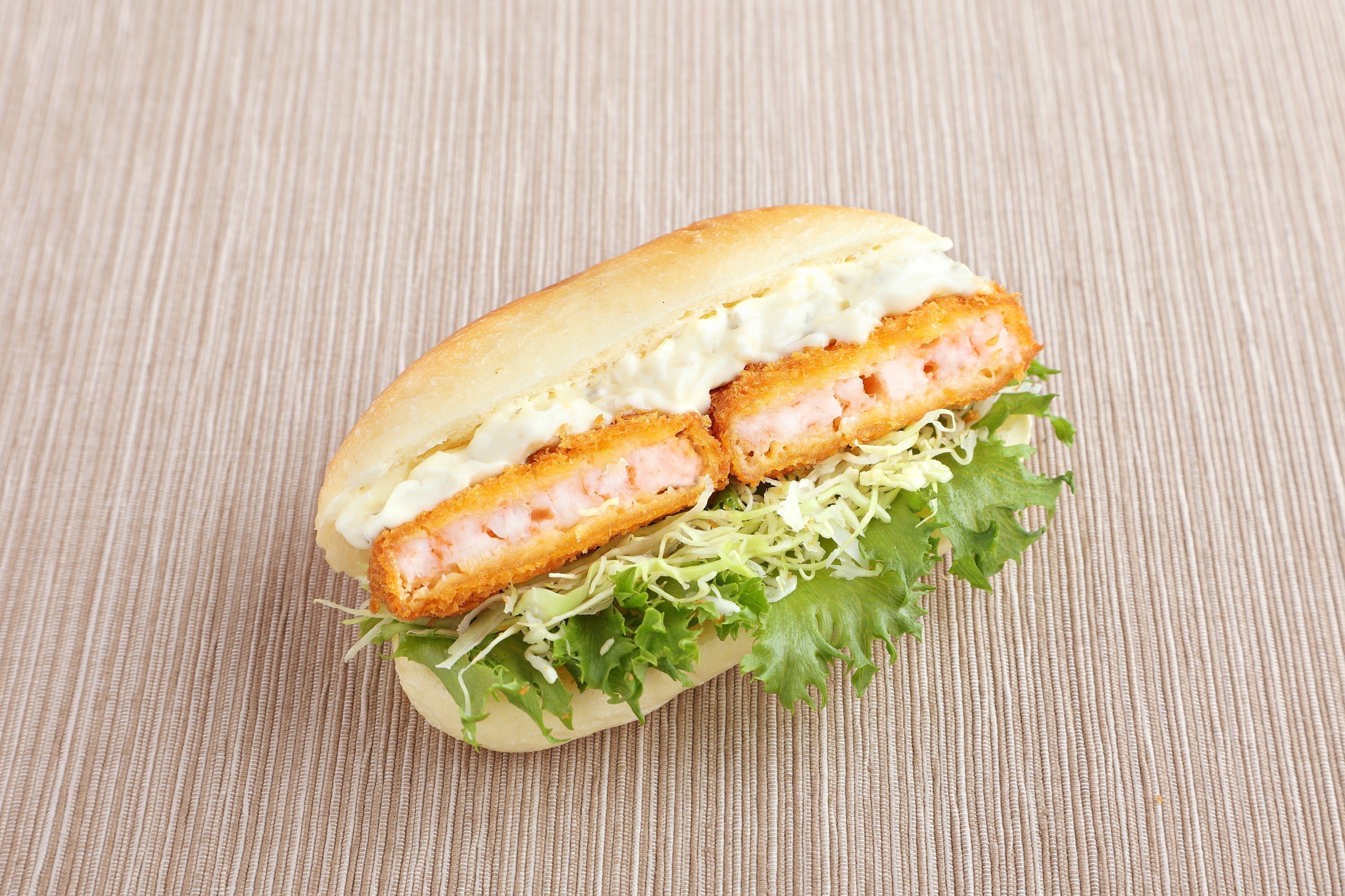 一緒にサンド。エビのぷりぷり食感をお楽しみください。