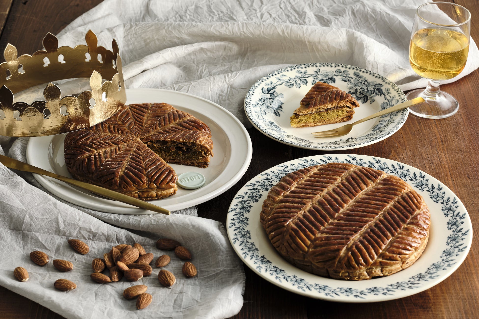フランスでは、公現祭(エピファニー)に楽しむ伝統的な焼き菓子として新年の食卓に並び、”王様のお菓子”の愛称で親しまれている「ガレット・デ・ロワ」。切り分けたピースから、パイの中に忍ばせた幸福のフェーヴ(アーモンド)が当たった人は、王冠をかぶりテーブルを囲む人々から祝福を受け、1年が幸せに過ごせると言われています。
