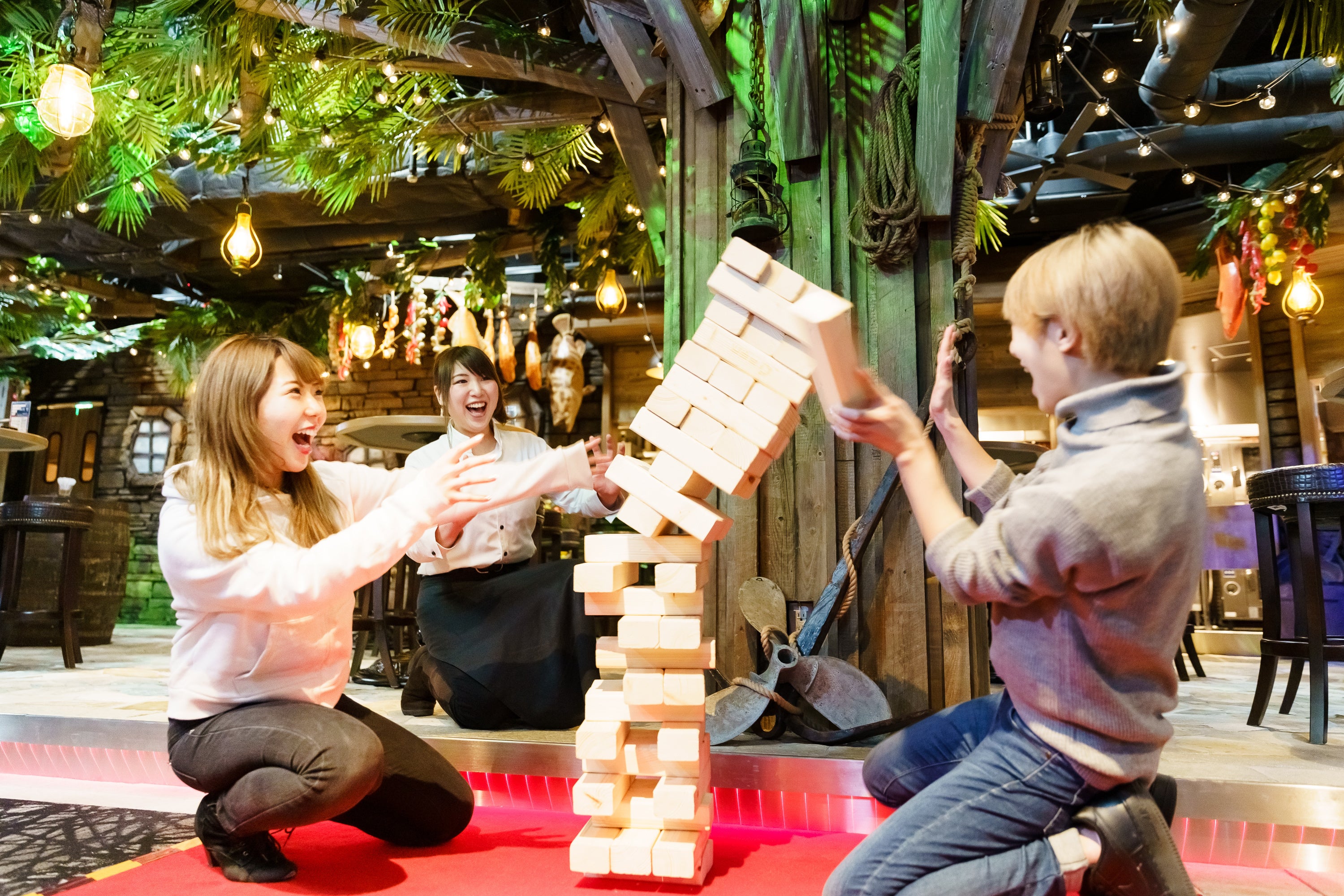 またBee限定設置のおもちゃである、無料の巨大ジェンガはその見た目と音の大きさに誰もが驚きます。