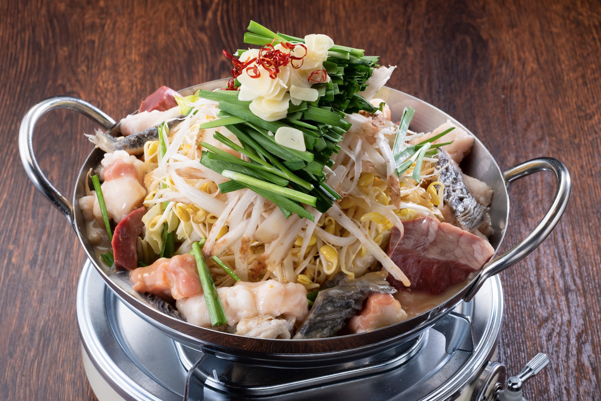 和牛ホルモン一頭買いならではの鍋。スープはげんこつ鶏や和牛テール、昆布や鰹節から長い時間をかけて取りました。白味噌ベースの濃厚スープが癖になります。