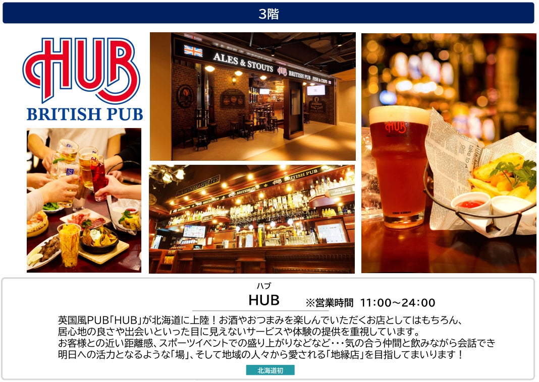 3階 フード&アミューズメント 11:00~23:00 ※HUBのみ24:00迄