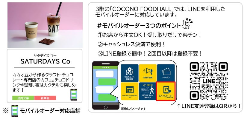 2ndオープンでは、3階「COCONO FOODHALL」に加え、新たなテナント計13店舗や3階屋内広場がオープンし、飲食店舗座席数が大幅に増加(1stオープン時:約300席+2ndオープン:約800席→約1100席)。今まで以上にゆったりと本施設をお楽しみください.