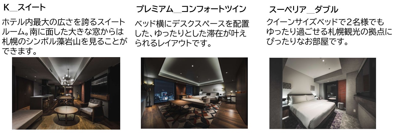 内装は洗練されたデザインのなかにも北海道・札幌の自然・文化・歴史が感じられるインテリアや照明演出、空間デザインを取り入れます。 ※全室禁煙