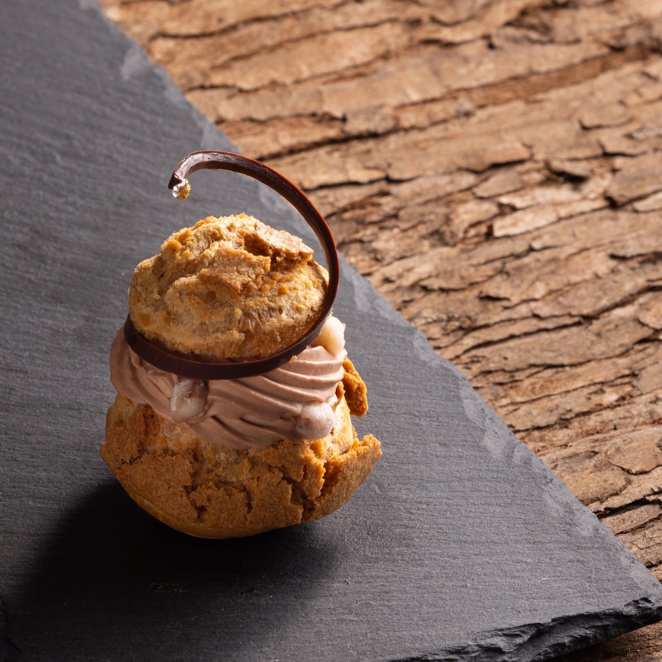 ココナッツやコーヒーのようなまろやかさのあるFARM to BARショコラ「フィリピン」を使ったクレーム・パティシエールとキャラメルでソテーしたバナナを重ね、