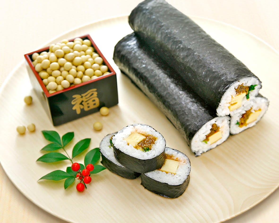 縁起をかつぎ、七福神にちなんで七種の食材でつくった恵方巻。