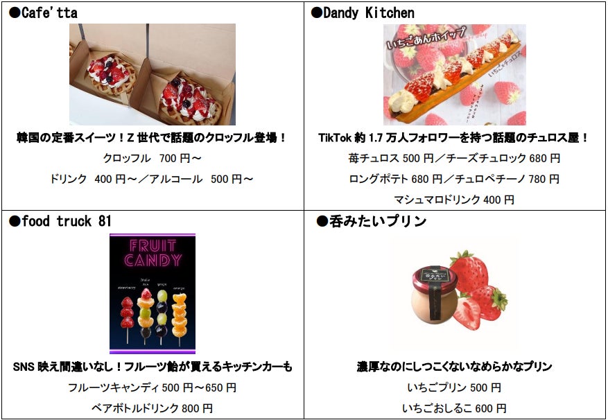 - 旬のいちごメニューを提供するキッチンカーが大集合!TikTokで話題のチュロス専門店の出店も!