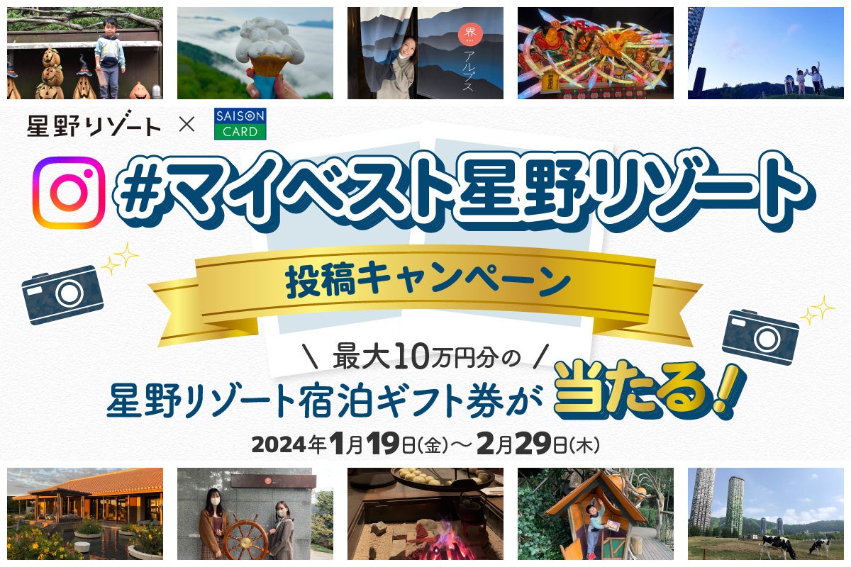 【セゾンカードのInstagram写真投稿キャンペーン】星野リゾートでのベストショット「#マイベスト星野リゾート」のハッシュタグ投稿で最大10万円分の星野リゾート宿泊ギフト券が当たる!