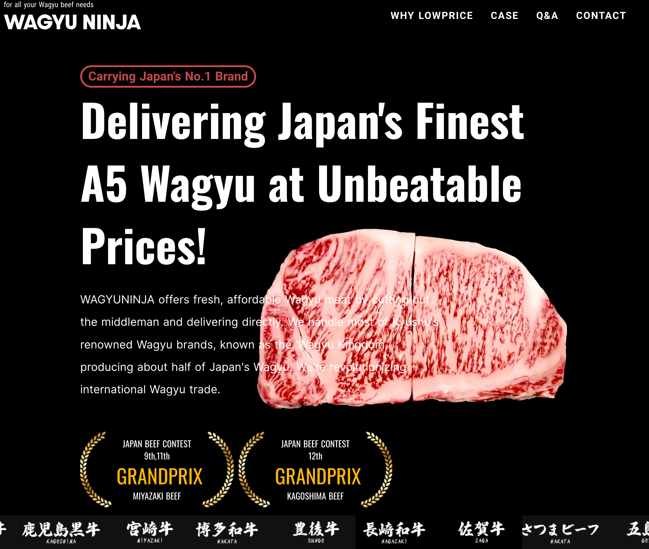 キャンプ女子株式会社、和牛の国際取引をサポートする新WEBサイト「WAGYUNINJA」を公開