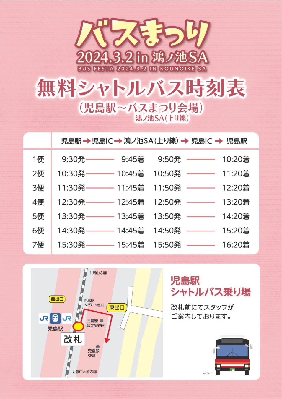 ★イベント当日は児島駅~バスまつり会場(鴻ノ池SA上り)間を無料シャトルバスが運行★