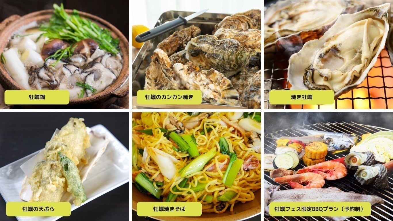 会場には、ぷりぷりの牡蠣を使った牡蠣グルメが大集合!寒い日にうれしいあったか牡蠣汁や、カンカン焼き、焼き牡蠣や牡蠣の天ぷら、牡蠣焼きそばや、牡蠣のスペシャルBBQセット(NGRILLでの予約制)など牡蠣尽くしのグルメをご堪能ください。