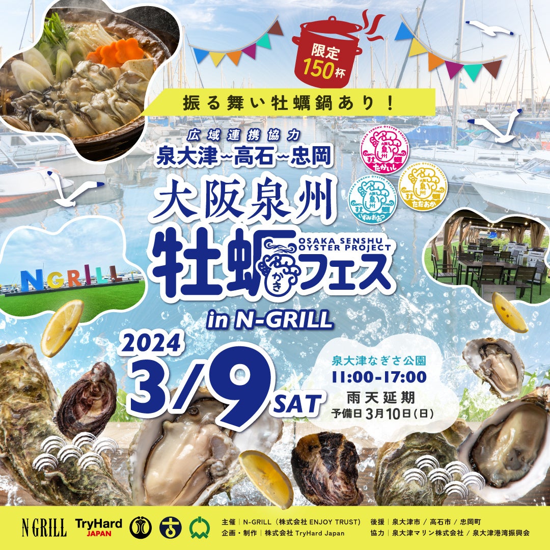 大阪泉州牡蠣フェス in NGRILL 特設ページ:https://www.tryhardjapanevent.com/osaka-senshu-oyster-fes