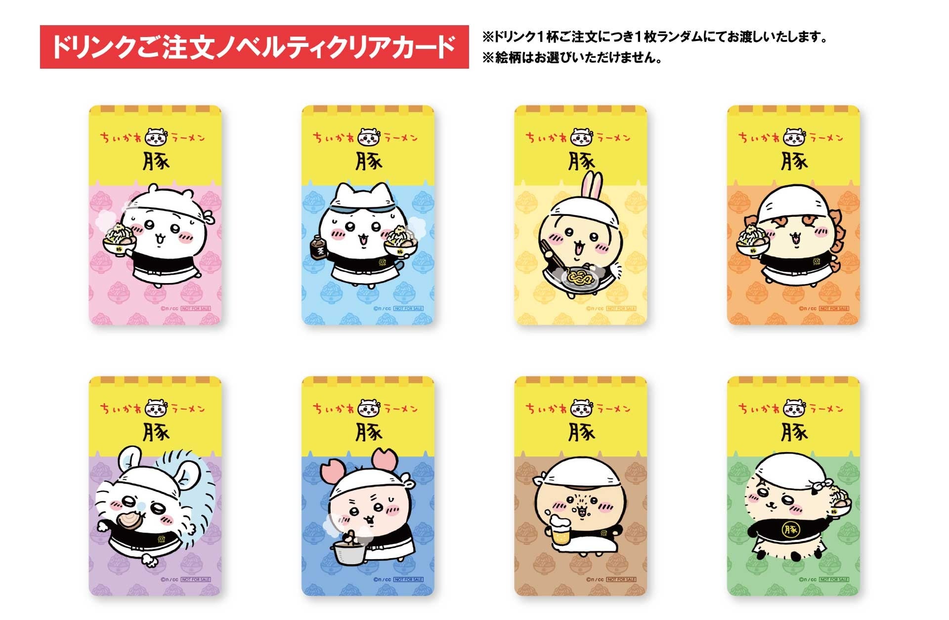 ラーメンはサイズを「ミニ(ちいかわ)」、「小(ハチワレ)」、「大(うさぎ)」の3種から選べ、オリジナルどんぶりにてご提供いたします。ラーメンメニューをご注文された方には、特典としてオリジナルどんぶりデザインの特製ステッカーをそれぞれお渡しいたします。