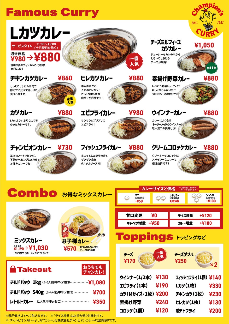 「チャンピオンカレー御経塚店」が2024年2月26日(月)にリニューアルオープン!